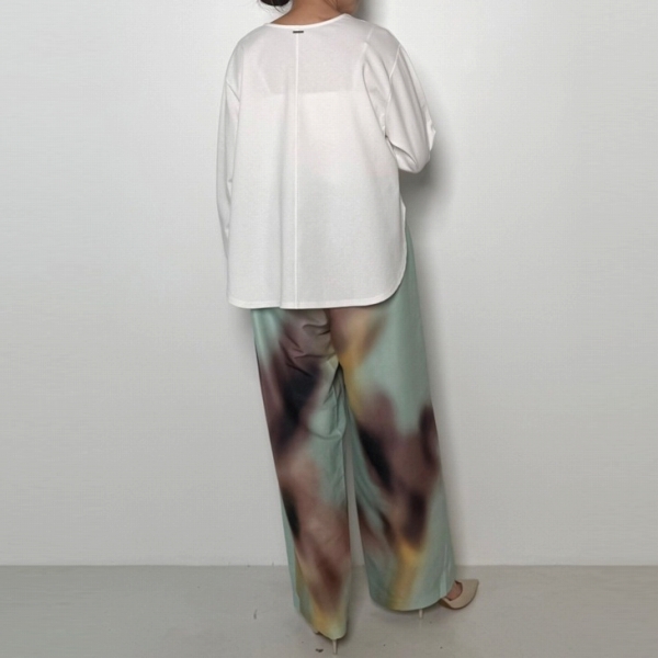 タックを施すことでフロントのみボトムにタックインしてる様に見えるデザインで、