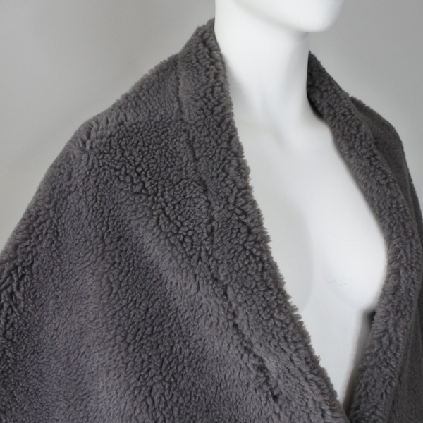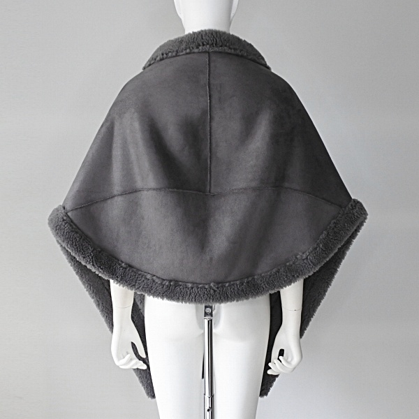【 QTUME 】クチューム ウール混 エコムートン ボア ムートン リバーシブル ポケット ホック付き ショール 春秋冬 レディース [562-24516-CGRY]