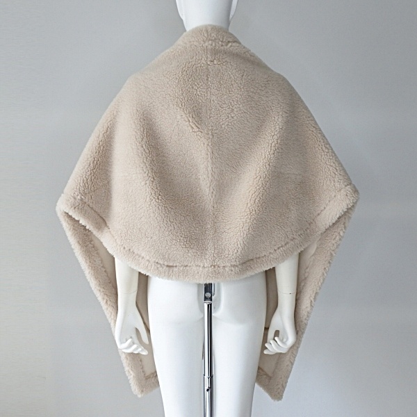 【 QTUME 】クチューム ウール混 エコムートン ボア ムートン リバーシブル ポケット ホック付き ショール 春秋冬 レディース [562-24516-IVO]