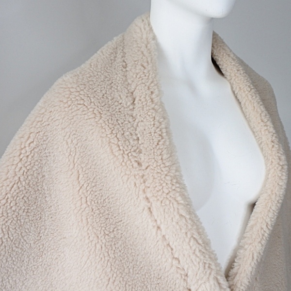昨年好評のボアストールの裾とポケットを丸みのある表情にしてアップデート。