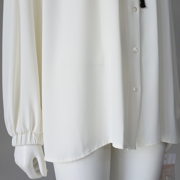 襟もとによせたフリルとギャザー、華奢リボンがpointのブラウスです。