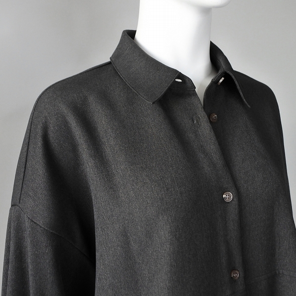 《 セットアップ対応 》【 CLOCHE 】 クロッシェ クロシェ ゆったりシルエット ウール調 ウォッシャブル コクーン シャツ ブラウス 春秋冬 レディース [552-85639-78-CGRY]